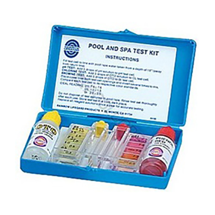 เทน้ำสระว่ายน้ำลงในขวด ขวดสีเหลืองสำหรับการทดสอบ OTO, 1 ถึง 2 หยดลงในขวดและฝาฝาครอบและเขย่าเบา ๆ เปรียบเทียบค่าสีกับระดับด้านซ้ายคุณสามารถทราบว่า OTO มีค่ามาตรฐานอยู่ระหว่างวงเล็บ