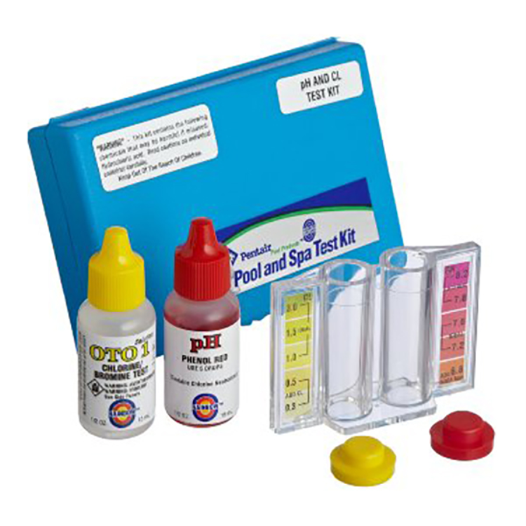เทน้ำสระว่ายน้ำลงในขวด (ครึ่งขวดตัวอย่างเช่น), ขวดสีแดงสำหรับการทดสอบ PH, 1 ถึง 2 หยดลงในขวดและฝาฝาครอบและเขย่าเบา ๆ เมื่อเทียบกับค่าสีที่มีมาตราส่วนอยู่ทางด้านซ้ายคุณสามารถทราบค่า pH ได้มากเท่าไรค่ามาตรฐานอยู่ระหว่างวงเล็บ